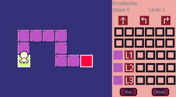 Code Runner is a web-based puzzle game where you solve mazes by programming your character's movements. Arrange command cards into sequences, execute your program, and debug your logic to reach the exit. Learn programming concepts like loops and state changes through play.